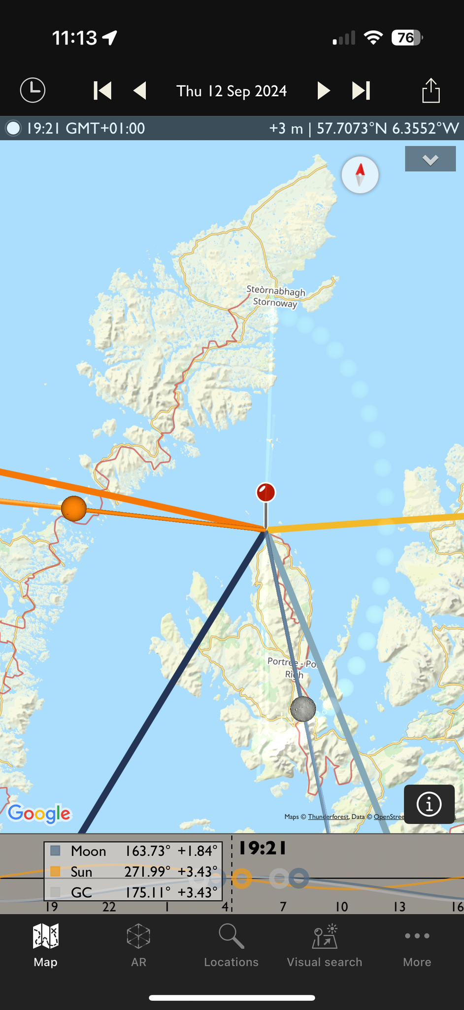 The Photographer's Ephemeris showing the shot location